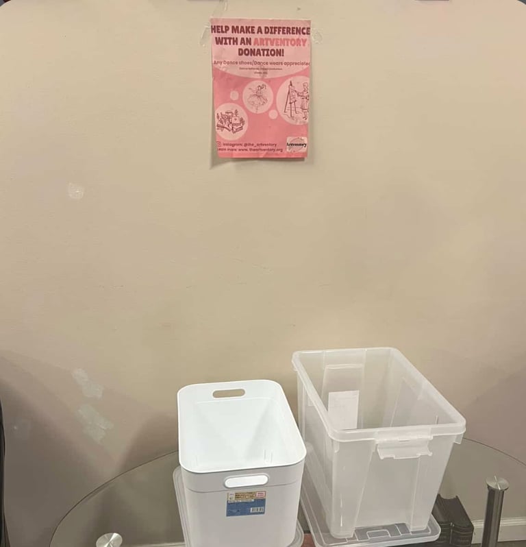 Check out our donation boxes at Al studio to make a difference in art and dance accessibility!