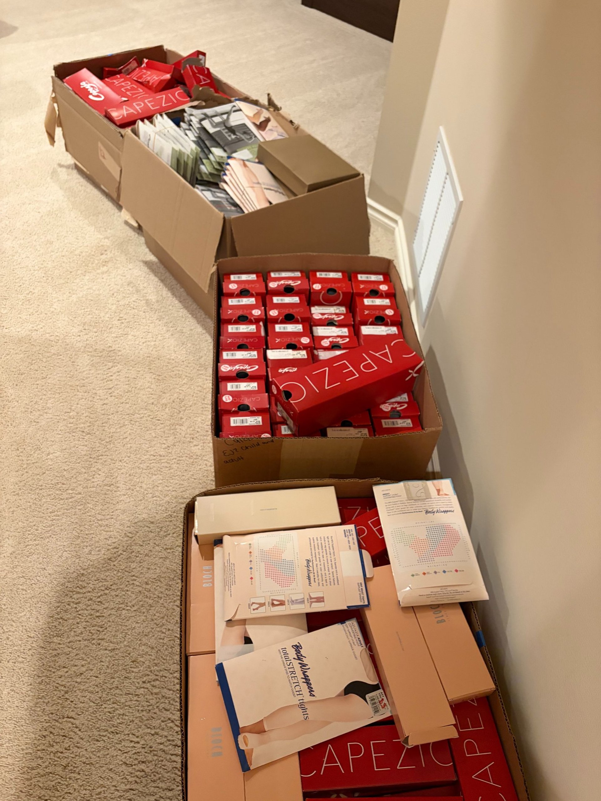 We set up donation boxes at local art and dance studios to bring to our inventory